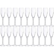 Een set met 30 stevige flutes, geschikt voor champagne. De glazen hebben een inhoud van ca. 190ml, 19cl. Afmeting: ca. D5,5 x H22,5 cm. Materiaal: getemperd glas. Geschikt voor in de vaatwasser. U…