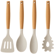 Cookinglife Keukengerei set - Kookgerei set - hout beige 4 delig - Bakspaan, opscheplepel, saladelepel & spaghettilepel