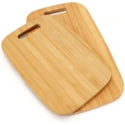 Set van 2 snijplanken, hout, bamboe, 2 verschillende maten, houten plank, serveerplank voor koken en serveren, houten plank, keukensnijplank voor groenten, vlees, kaas en meer