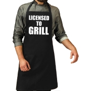 Licensed to grill barbecueschort mannen/ heren zwart. Op dit schort staat groot Licensed to grill. Leuk als cadeau voor een echte BBQ-liefhebber, bijvoorbeeld voor zijn verjaardag, Vaderdag of…
