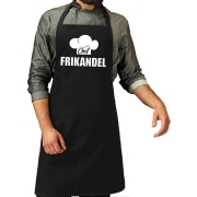 Chef frikandel schort / keukenschort zwart voor heren. Dit schort is bedrukt met de tekst: Chef frikandel. Met koksmuts erboven. Ken jij iemand die de beste frikandelen maakt? Dan is dit schort…