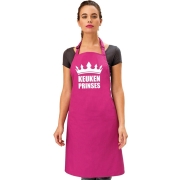 Cadeau schort voor dames in de kleur roze. Op het keukenschort staat de tekst: Keuken Prinses. Een leuk kado idee voor bijvoorbeeld een verjaardag of een andere gelegenheid. Zoek je nog een…