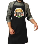 Mexican food schort / keukenschort zwart voor heren. Dit schort is bedrukt met de tekst: Mexican food. Materiaal: 65% polyester/35% katoen. One size: breedte 72 cm, lengte 86 cm. Kwaliteit…