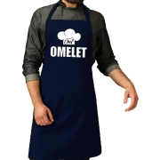 Chef omelet schort / keukenschort zwart voor heren. Dit schort is bedrukt met de tekst: Chef omelet. Met koksmuts erboven. Ken jij iemand die de beste omeletjes bakt? Dan is dit schort een leuk…