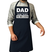 Schort voor heren in de kleur blauw. Op het schort staat de tekst: Dad, the man, the myth, the bbq legend. Is jouw vader de barbecue legend? Dan is dit keukenschort het perfecte kado voor hem! Het…