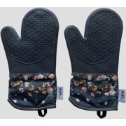 Kachelhandschoen paar: oven- grillhandschoenen van siliconen en katoen, zeer hittebestendig, antislip, afwasbaar met bloemenpatroon