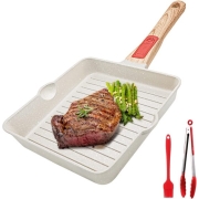 Anti-aanbakprestaties De grillpan is PFOS/PFOA-vrij en niet giftig, gemaakt van hoogwaardig aluminium. De vierkante grillpan met antiaanbaklaag heeft minder olie nodig en geeft minder rook…