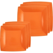 Santex feest/verjaardag borden set oranje bestaande uit 20x gebaksbordjes 18 cm vierkant en 20x feestbordjes 23 cm vierkant. Wegwerp party bordjes van stevig karton, om ieder feestje mee compleet…
