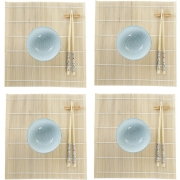 16-delige luxe sushi serveer set aardewerk voor 4 personen licht blauw/wit. Deze servies set voor sushi bestaat uit 4x ronde kommetjes met stijlvolle print, 4x placemats, 4x paar bamboe eetstokjes…