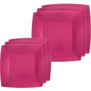 Santex feest/verjaardag borden set fuchsia roze bestaande uit 20x gebaksbordjes 18 cm vierkant en 20x feestbordjes 23 cm vierkant. Wegwerp party bordjes van stevig karton, om ieder feestje mee…