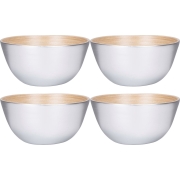 4x Schaaltje/kommetje in de kleur zilver. Gemaakt van bamboehout. Geschikt voor bijvoorbeeld chips, nootjes, of andere snacks. Afmeting: D14 x H7cm. Niet geschikt voor in de vaatwasser, handwas is…