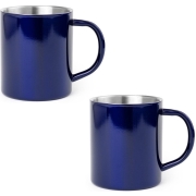 8x drinkbekers/koffiemok in de kleur metallic blauw van 280 ml. Roestvrijstalen koffiemokken / drinkbekers met oor en zilveren binnenkant. De inhoud van de beker is ongeveer 280 ml. Formaat: 8,9…