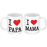 Love papa en mama met hartje mok - Cadeau beker set voor Papa en Mama -
