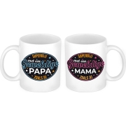 Superblij met een Mama en Papa mok - Cadeau beker set voor Papa en Mama -