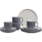 Service bestaat uit: 4 koffiekopjes (240 ml), 4 schoteltjes (15 cm Ø), 4 borden (diameter 19 cm) Materiaal: steengoed Vaatwasmachinebestendig Voor 4 personen…