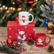 Kerstmok, set van 2, keramische koffiemok met kerstmotief, cartoon-bedrukt, Kerstmis, vakantie, vrienden, familie, kerstman en sneeuwpop