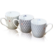 3 koffiemokken 'Ebbe & Flood' Anker Blauw, Grijs, Rood & Wit 400 ml