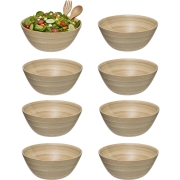 8x sla en serveer kommetjes en of dessert serveer schaaltjes gemaakt van mooi samengesteld bamboe hout in de kleur beige bruin. Formaat: D17 cm en H7 cm. Niet 100% vaatwasser bestendig, blijft…