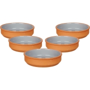 Set 5x tapas/creme brulee serveer schaaltjes in de kleur terracotta/groen. De set bestaat uit 4x stuks van 16 x 4 cm en 1x stuk van 23 x 4 cm. Ronde tapas/oven hapjes/toetjes/souffle schaaltjes…