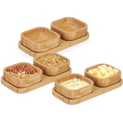 Cosy & Trendy Serveerplank bamboe - 1x - met 3 luxe schaaltjes - 31 x 15 cm - tapas em saus schaaltj -