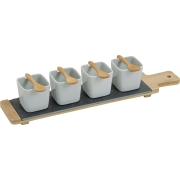 5-Delige creme brulee set met witte schaaltjes en een rode brander -