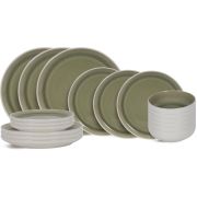 Cookinglife Serviesset Mos Groen 18-delig / 6 personen - 6 dinerborden, 6 ontbijtborden en 6 kommen