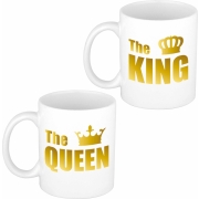 Cadeauset van gouden King en Queen mokken/bekers 300 ML -