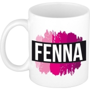Fenna naam cadeau mok / beker met roze verfstrepen - Cadeau collega/ moederdag/ verjaardag of als persoonlijke mok werknemers