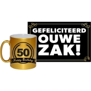 Verjaardag cadeau mok/beker 50 jaar print 300 ml + A5-size wenskaart ouwe zak -