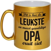 Cadeau mok goud leukste en meest geweldige opa, 330 ml. Deze gouden mok is bedrukt met de tekst: dit is hoe de leukste en meest geweldige opa eruitziet. Verras opa met een leuke mok / beker voor zijn…