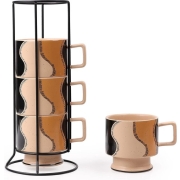 Koffiekopjesset, bevat 4 x 320 ml porseleinen koffiekopjes + 1 x 304 voedselveilige ijzeren standaard, herbruikbare keramische koffiekopjes, modern, BPA-vrij, koffiekopjes, set bruin