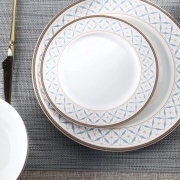 Serviesset voor 6 personen, 18-Delige Combiservies bevat Kommen, Borden met Moderne Geometrische Patroon, Porseleinen, Grijs Blauw