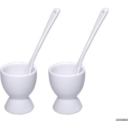 Eierdop - 2 Stuks - Wit Porselein - Inclusief Lepel