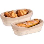 Broodmandje speciaal voor afbakbroodjes - 2x - nagaren/niet uitdrogen - met hoes - L28 x B15 x H8 cm -