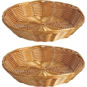 2x Gevlochten fruitmanden/broodmanden rond 25 x 6 cm. Rieten uiterlijk gevlochten rond fruitmandje/broodmandje. Ideaal voor het presenteren van fruit of voor het serveren sneetjes brood of vers…