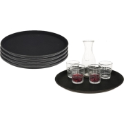 Horeca dienblad met anti slip laag - 5x - zwart - kunststof - D35 cm - rond dienblad -