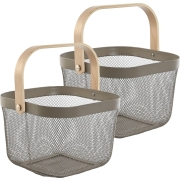 2x draadmand/fruitschaal/opbergmand, model Maya, in de kleur grijs/beige. Deze vierkante keukenmand is een stijlvolle toevoeging aan uw keuken. Door de mesh/draad metalen wanden geniet uw groente…
