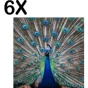 BWK Textiele Placemat - Pauw met Gespreidde Vetren - Set van 6 Placemats - 50x50 cm - Polyester Stof - Afneembaar