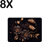 BWK Flexibele Placemat - Goud - Bloem - in Bloei - Artistiek - Set van 8 Placemats - 40x30 cm - PVC Doek - Afneembaar