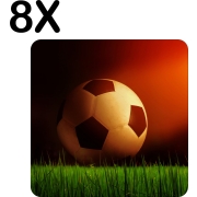 BWK Luxe Placemat - Voetbal op het Gras in Schemerlicht - Set van 8 Placemats - 50x50 cm - 2 mm dik Vinyl - Anti Slip - Afneembaar