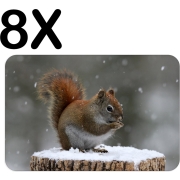 BWK Luxe Placemat - Knabbelende Eekhoorn - Winter - Set van 8 Placemats - 45x30 cm - 2 mm dik Vinyl - Anti Slip - Afneembaar