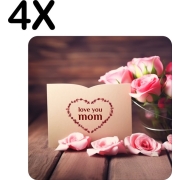 BWK Luxe Placemat - I Love Mom - Moederdag - Rozen - Set van 4 Placemats - 40x40 cm - 2 mm dik Vinyl - Anti Slip - Afneembaar