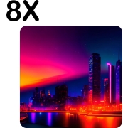 BWK Flexibele Placemat - Stad aan het Water in Neon Kleuren - Set van 8 Placemats - 40x40 cm - PVC Doek - Afneembaar