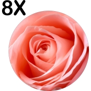 BWK Stevige Ronde Placemat - Roze Roos van Dichtbij - Set van 8 Placemats - 40x40 cm - 1 mm dik Polystyreen - Afneembaar