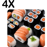 BWK Luxe Placemat - Sushi met Zalm - Set van 4 Placemats - 40x40 cm - 2 mm dik Vinyl - Anti Slip - Afneembaar