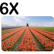 BWK Flexibele Placemat - Tulpenveld met Molen in de Verte - Set van 6 Placemats - 45x30 cm - PVC Doek - Afneembaar