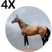 BWK Luxe Ronde Placemat - Bruin Paard - Dier - Grijze Achtergrond - Set van 4 Placemats - 50x50 cm - 2 mm dik Vinyl - Anti Slip - Afneembaar