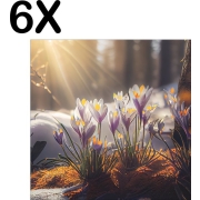 BWK Textiele Placemat - Krokussen in het Bos - Set van 6 Placemats - 50x50 cm - Polyester Stof - Afneembaar