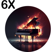 BWK Stevige Ronde Placemat - Brandende Piano in het Donker - Set van 6 Placemats - 50x50 cm - 1 mm dik Polystyreen - Afneembaar