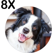 BWK Stevige Ronde Placemat - Vrolijke Bordecollie - Hond - Set van 8 Placemats - 50x50 cm - 1 mm dik Polystyreen - Afneembaar